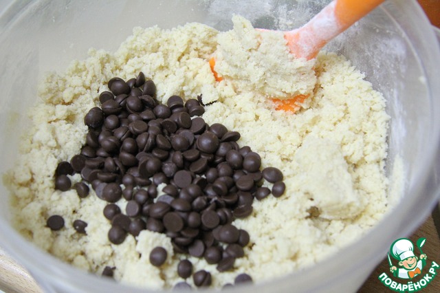 • В конце ввести шоколадную стружку (у меня капли) и вновь перемешать.