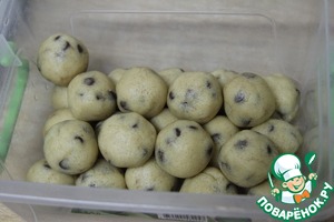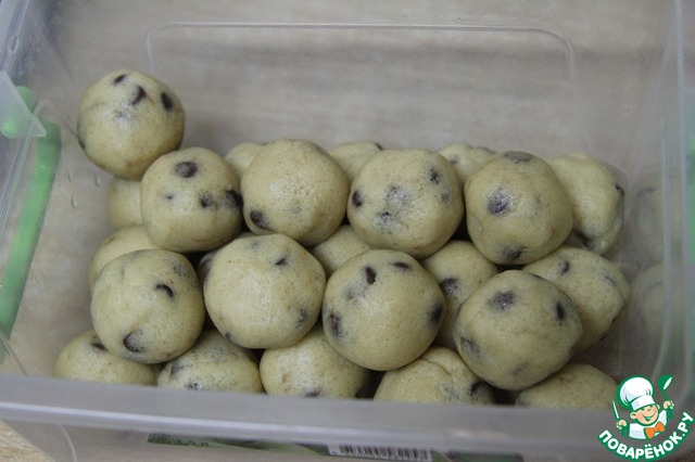 • Скатать маленькие шарики (размером с небольшой орех), выложить на лист. Накрыть пленкой и поставить в холодильник на сутки.