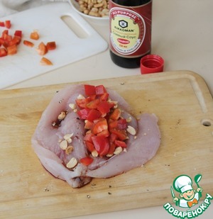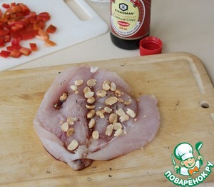 Половинку куриного филе посыпать арахисом
