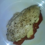 Сверху выложить ломтик сыра моцарелла. У меня прикрыто пластинкой плавленного сыра под одноименным названием "моцарелла"