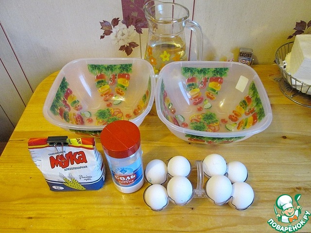 Пока селедка принимает молочные ванны займемся кляром. Для селедки очень хорошо подходит «воздушный» кляр, да и делается он проще простого. Нам потребуется всего ничего, а именно яйца, мука, соль, вода вот и все.