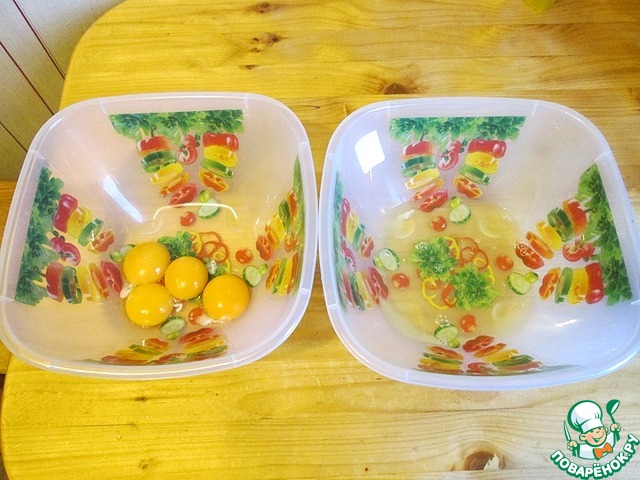 Приступим. Разбиваем яйца, в процессе разделяем на желтки и белки, в одну миску желтки в другую белки.