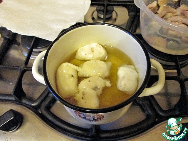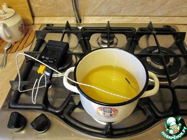 Отставляем белки в сторону и подготавливаем фритюр. Масло берем без запаха и разогреваем его до 170 градусов.