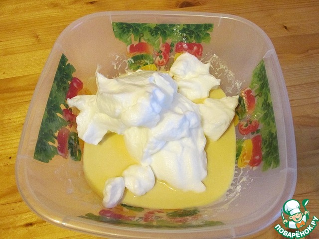 Тесто готово, отставляем его в сторону и начинаем заниматься белками, добавляем щепотку соли и взбиваем миксером до «устойчивых пиков»