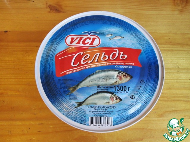 Ну приступим, нам понадобится селедка, причем хорошая селедка, плотненькая и толстенькая, а не какой либо заморыш. После того как исчезла тетка на рынке с волшебной селедкой «из бочки» я перешел на селедку в жестяных «шайбах», результат всегда предсказуемо стабильно вкусный. И так, берем вот такую симпатичненькую «шайбу».
