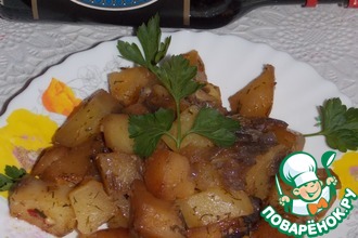 Отличная картошечка получилась! Я вначале ее отварила до полуготовности, а потом обжарила и запекла до румяной корочки.