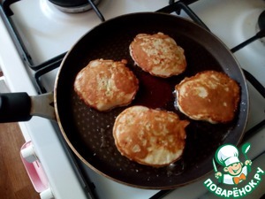 На разогретую сковороду в масло выкладываем ложкой тесто. Обжариваем с одной стороны до того, пока не схватятся блинчики и не станут красивыми цветом с одной стороны.