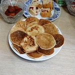 Сковорода у меня D-24 см, жарила по 4 шт блинов в два раза из этого количества теста.
