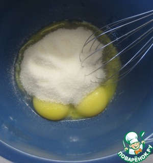 Желтки взбить с сахаром и ванильным сахаром до пышной, светлой массы. -