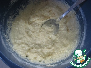 Добавить кокосовую стружку, муку, разрыхлитель теста и щепотку соли. Тщательно перемешать.
