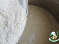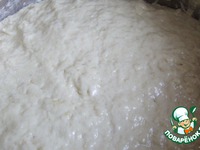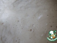 Постепенно добавляем муку. Консистенция теста (опары) должнa быть не гуще сметаны. Опару мы должны поставить в тёплое место для подъёма. Готовность опары определяется обилием пузырьков.