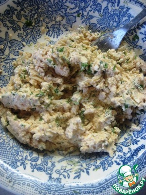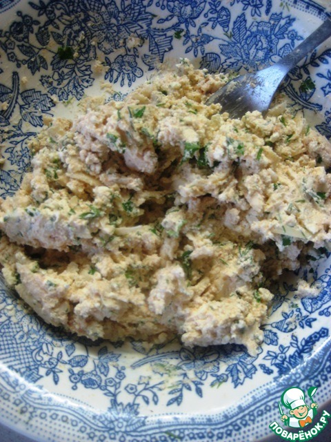 Добавить измельченную зелень и натертый твердый сыр. Хорошо перемешать.