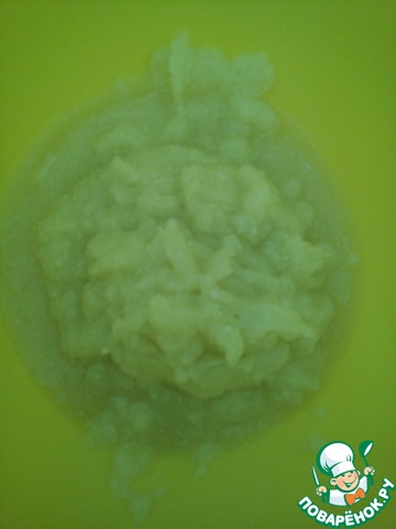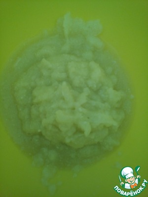 Почистить кабачок и пюрировать, я это сделала с помощью измельчителя.