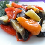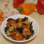 Недавно моему деду исполнилось 97 лет. Он по-прежнему остроумен, краток в формулировках и по-прежнему любит вкусную еду. Когда я его навещала в последний раз, на столе, кроме всяких других вкусностей, стояла баклажановая закуска, купленная в каком-то специальном магазине. "Вот это непременно надо попробовать! Это очень вкусно, тебе понравится!"- рекомендовал мне дед. Это, действительно, было очень вкусно, пикантно, ароматно, свежо - все, как я люблю. Единственное, уж очень много масла оставалось на тарелке, да и со шкурками сладкого перца у меня, как и у многих, отношения никак не складываются. Вот и стала я думать, как же приготовить такую закуску, чтоб и вкусно, и диетично было? Результатом делюсь с вами, дорогие поварята - это действительно очень вкусно! При этом малокалорийно, подходит для вегетарианцев и веганов, для сидящих на диете, пригодно для поста и раздельного питания. Короче, с тех пор эта закуска стала хитом в нашей семье, хотите попробовать?