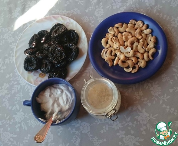 Ингредиенты для «Чернослив, фаршированный кешью»: