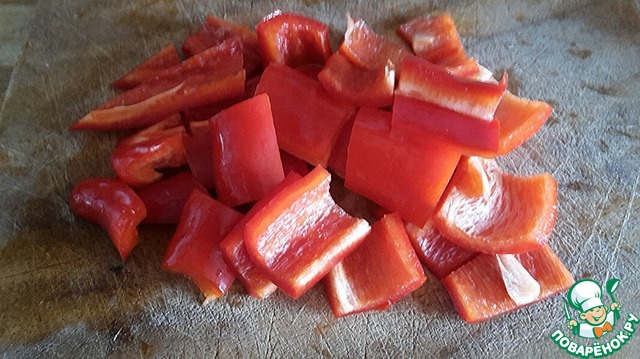 Сладкий перец очищаем от семян и перепонок, режем крупно.