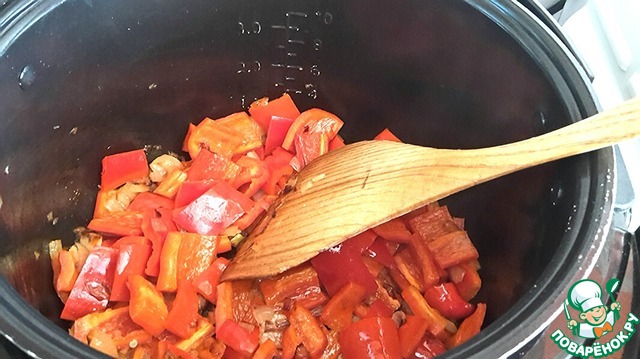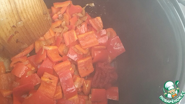 за 3 минуты до конца программы добавляем сладкий перец, обжариваем. -