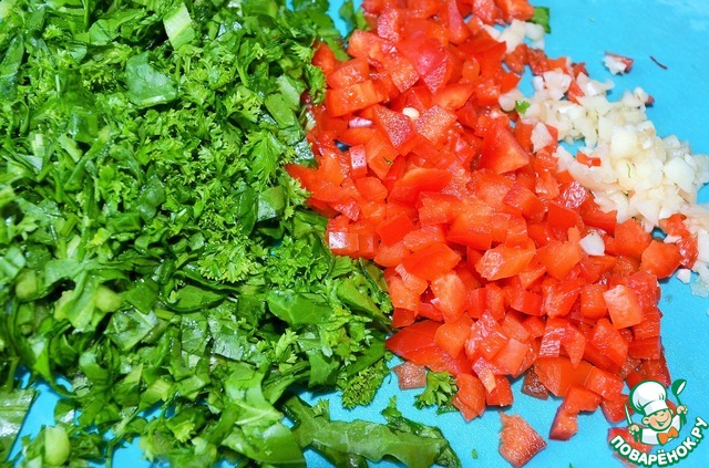 Листья мангольда и петрушку вымыть, нарезать мелко.