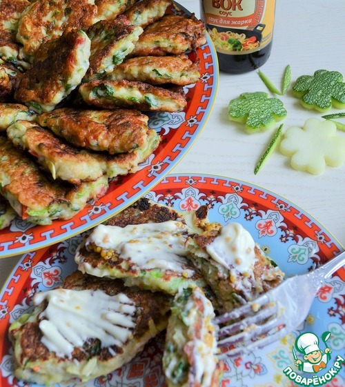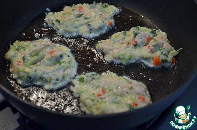 Рецепт «Оладьи из цуккини и курицы "Пеструшки"»: