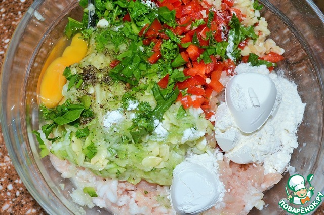 Ингредиенты для «Оладьи из цуккини и курицы "Пеструшки"»: