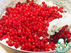 Добавить муку, мак и смородину. Осторожно перемешать лопаточкой.