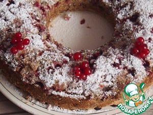 Посыпать пирог сахарной пудрой и украсить кистями красной смородины и листиками мяты.