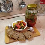 В первый раз всё(и зелень) пробила в блендере, во второй раз всё порубила мелко. Вкус, конечно остался неизменным, но на столе мне более нравится, когда всё нарезано мелкими кусочками.