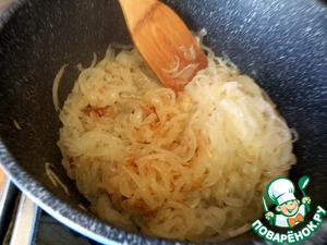 Пассеровать на растительном масле в толстодонной кастрюле, постоянно помешивая. Лук должен стать мягким и золотистым, но не подгореть и не поджариться.