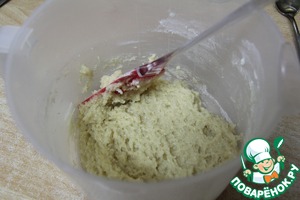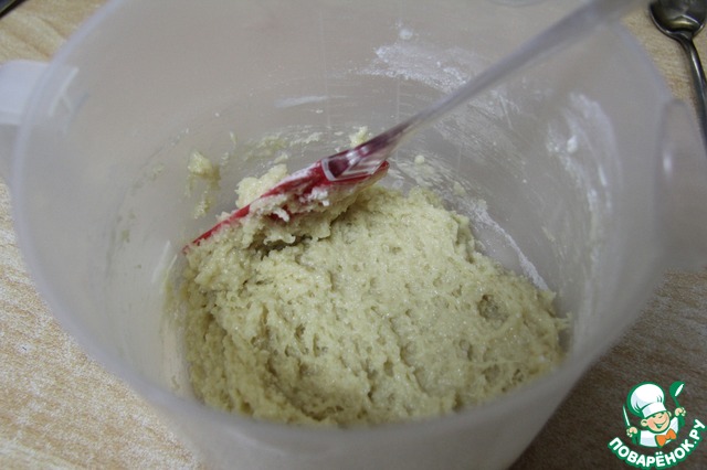 Добавить остывшее масло и нарезанные вишни. Также, непродолжительно смешать до объединения компонентов. Дать "отдохнуть" тесту час (как минимум) или оставить на ночь.