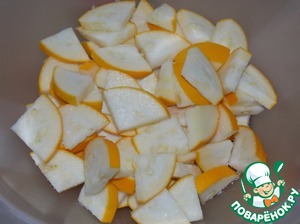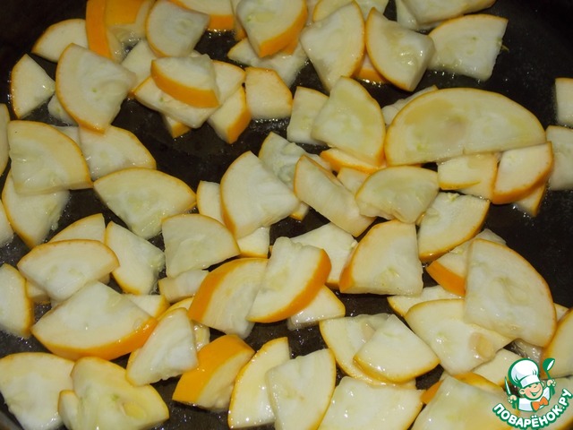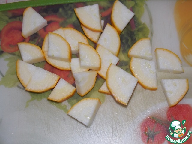 Кабачки (я взяла жёлтые) нарезать средними ломтиками.