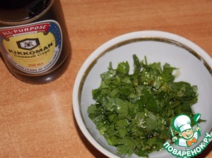 Добавить к чесноку зелень петрушки и соевый соус, перемешать.
