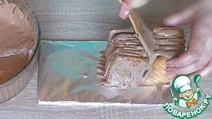То же самое проделываем с остальным печеньем, формируя торт. Между "стопочками" тоже помещаем крем.