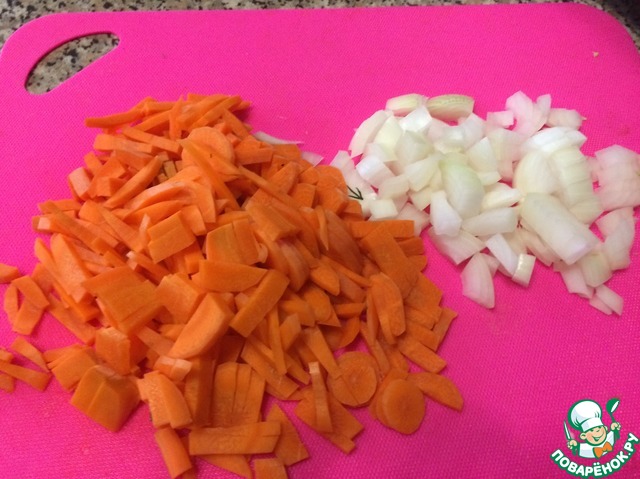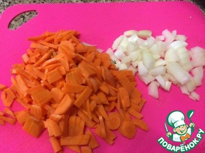 Лук и морковь нарезать, обжарить до мягкости.