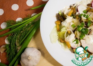 Рецепт «Салат с курицей, овощами и соленьями»: