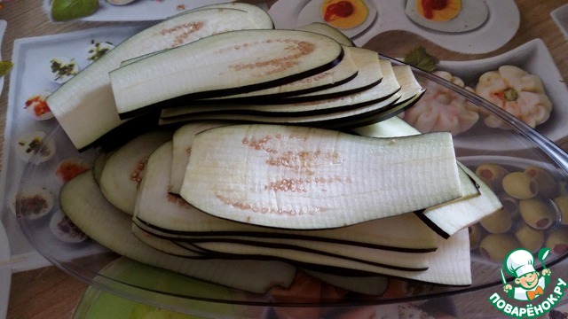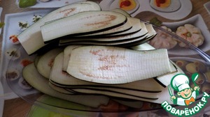 Режем наши баклажаны вдоль слайсами 3-5 мм. у меня для этого есть помощница ломтерезка.