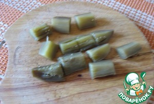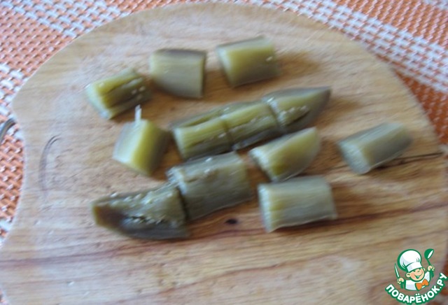 Баклажаны остыли. Нарезать их брусочками не более 4-5 см.
