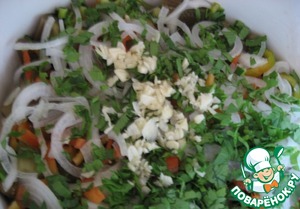 Сельдерей мелко нарезать.