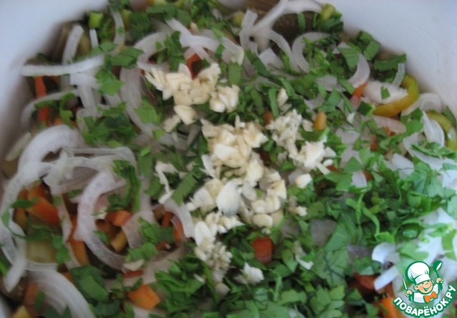 Между слоями класть чеснок.