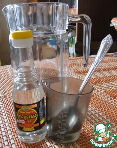 - Уксус (9% уксус - разбавляем водой) — 150 мл