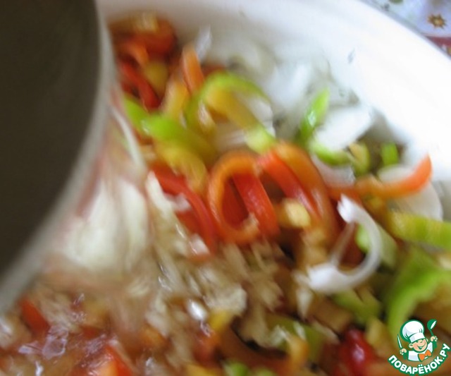 Болгарский перец нарезать соломкой.