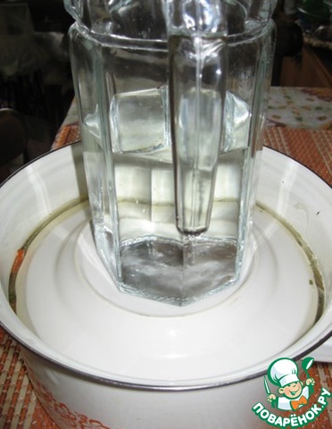 Накрыть сверху плоской тарелкой и поставить небольшой груз, чтобы все овощи "утонули" в маринаде. Оставить баклажаны с грузом на 1 час.
