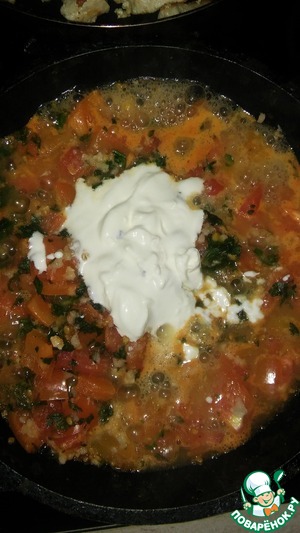Добавляем сметану. Солим, перчим. Тушим минуты 3