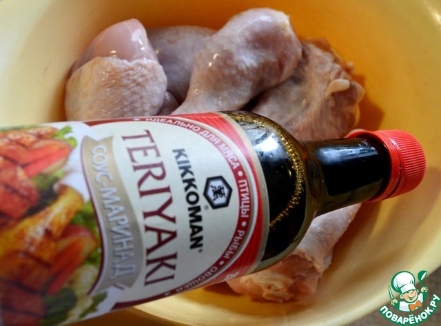 - Соевый соус (Kikkoman Teriyaki (4 ложки для голеней и 2 ложки для картофеля) — 6 ст. л.