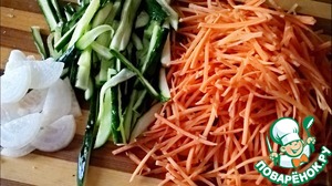 Пикантный, остренький салатик. Похож на корейский. Обилие овощей в составе. Витаминный и сытный!!!