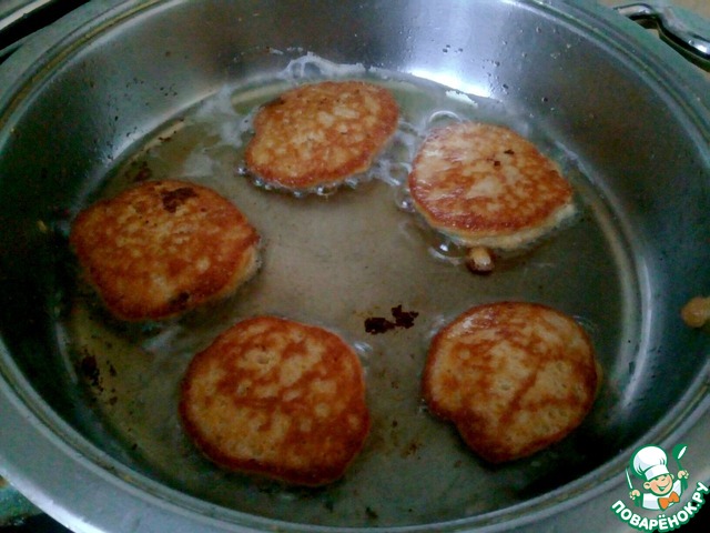 Нальём в сковороду растительного масла и жарим оладьи на среднем огне, сначала одну сторону. Затем перевернём и жарим на другой стороне, до золотистой корочки.