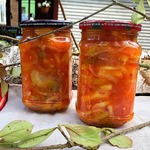 Несколько лет готовлю салат из кабачков с помидорами и перцами. Получается очень вкусно. Рецепт не буду писать, потому что такой же уже есть у Светлана6232. Я же хочу поделиться рецептом немного изменённым. Рецепт чем то похожий на прошлогодний, только помидоры заменил на томатный соус, и втрое увеличил количество сладкого перца. Хорош и как самостоятельное блюдо, и как закуска.