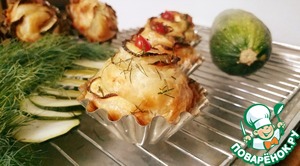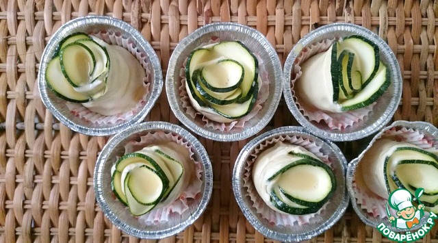 Отправляем розочки в прогретую до 180 градусов духовку на 25-30 минут (до готовности теста, ведь тонюсенькие ломтики цуккини точно успеют за это время приготовиться).