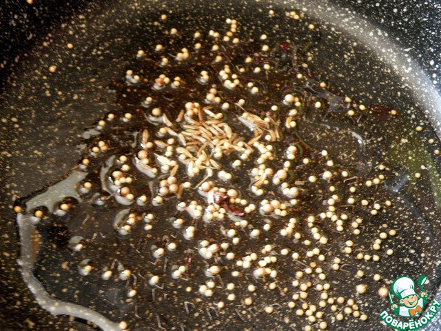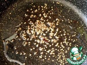 • Разогреть масло и быстро прогреть в нем целые пряности до развития аромата.