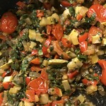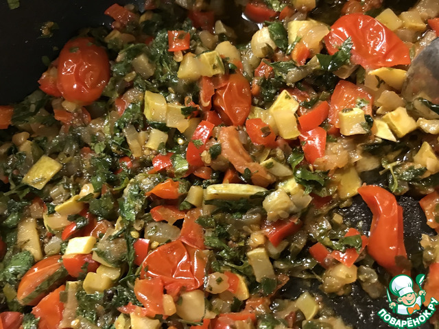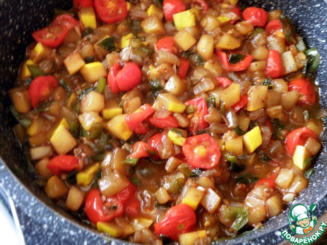 • Добавить помидоры и тушить пять минут, так же помешивая.