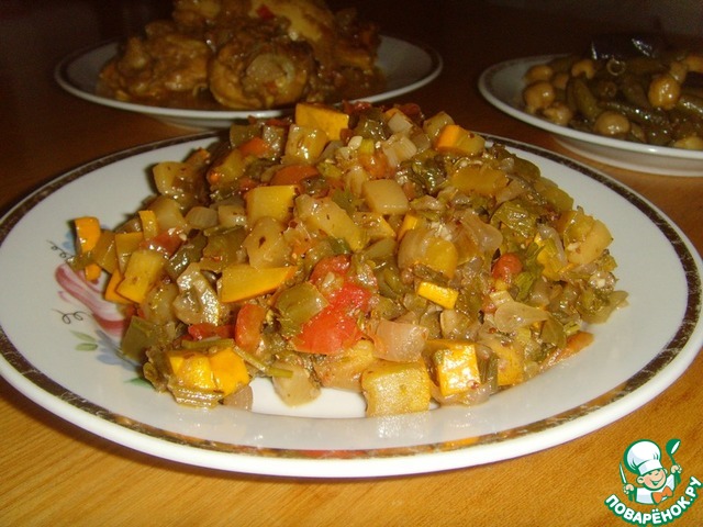 Оксаночка, как мы вкусно поужинали! Замечательное блюдо - яркое, сочное, вкусное! Мне очень понравился букет пряностей. Подкладывала в свою тарелку трижды, хорошо, что эта вкуснятина совершенно не отягощает! Спасибо огромное, нам очень понравилось! Извини, пожалуйста, фото не очень... Стемнело уже...